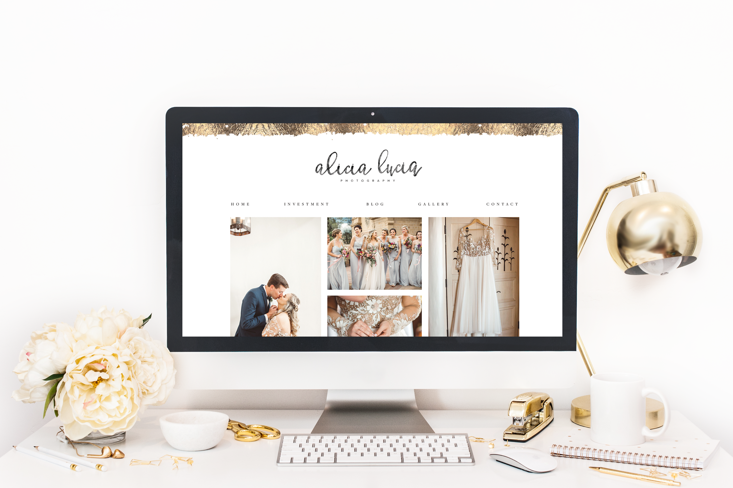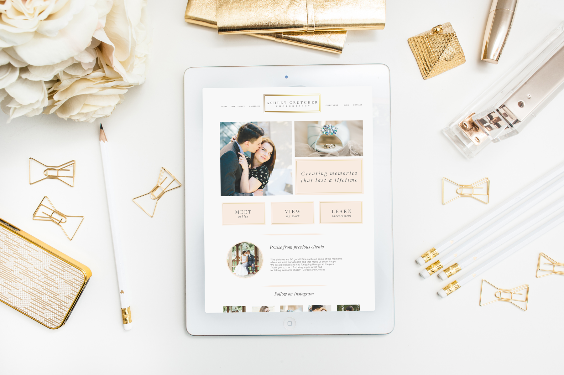 Feminine & fun brand identity + web design an award winning photographer. She wanted to some gold & blush, to convey the kind of style, her clients usually are attracted to. You can see the website in action HERE