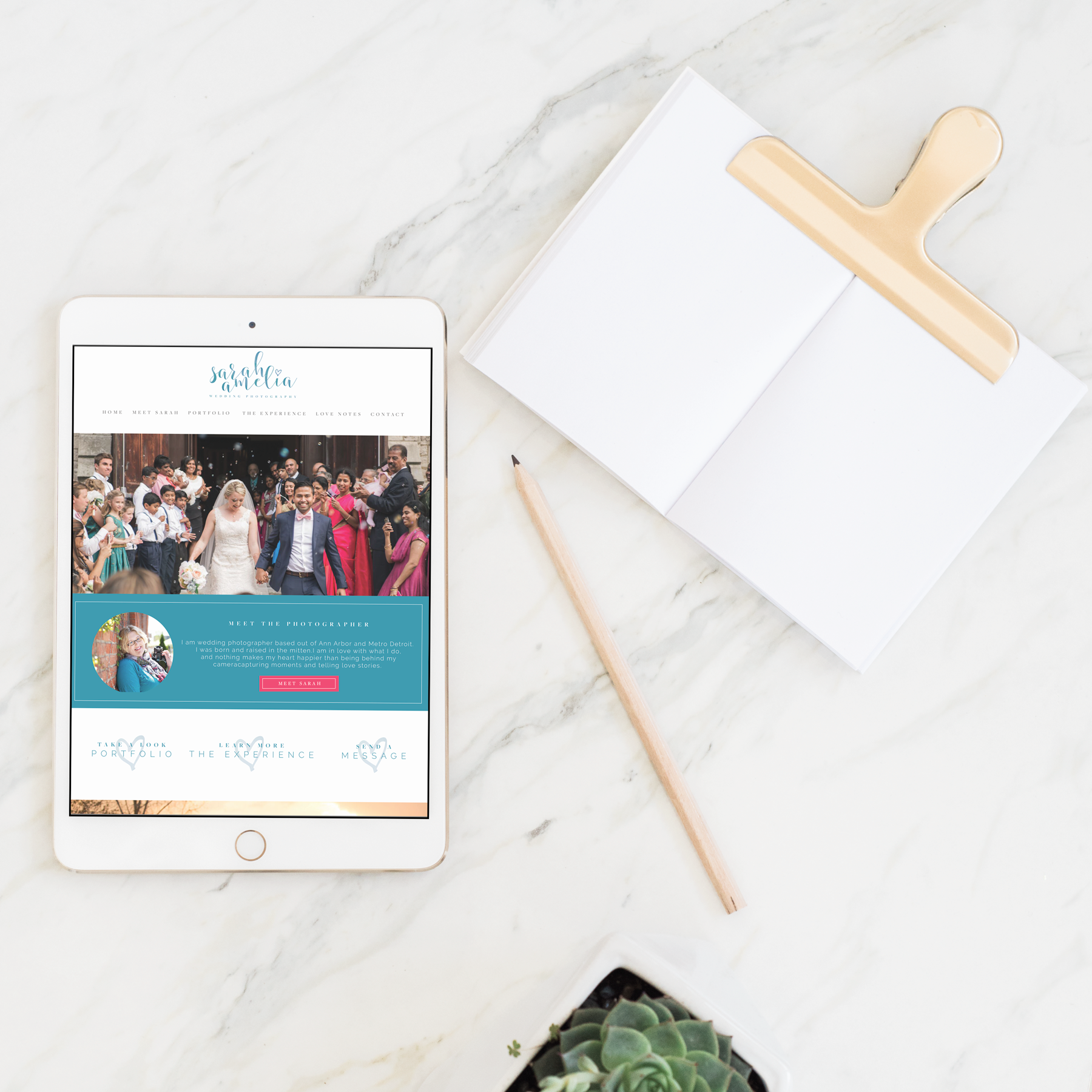Wedding photographer Sarah wanted a brand that represented her personal style and made her future clients see her as a fun and personable photographer. We collaborated on a style and palette that represented her own vision of what she wanted her business to look like. Visit the website to see it in action: Sarah Amelia Photography