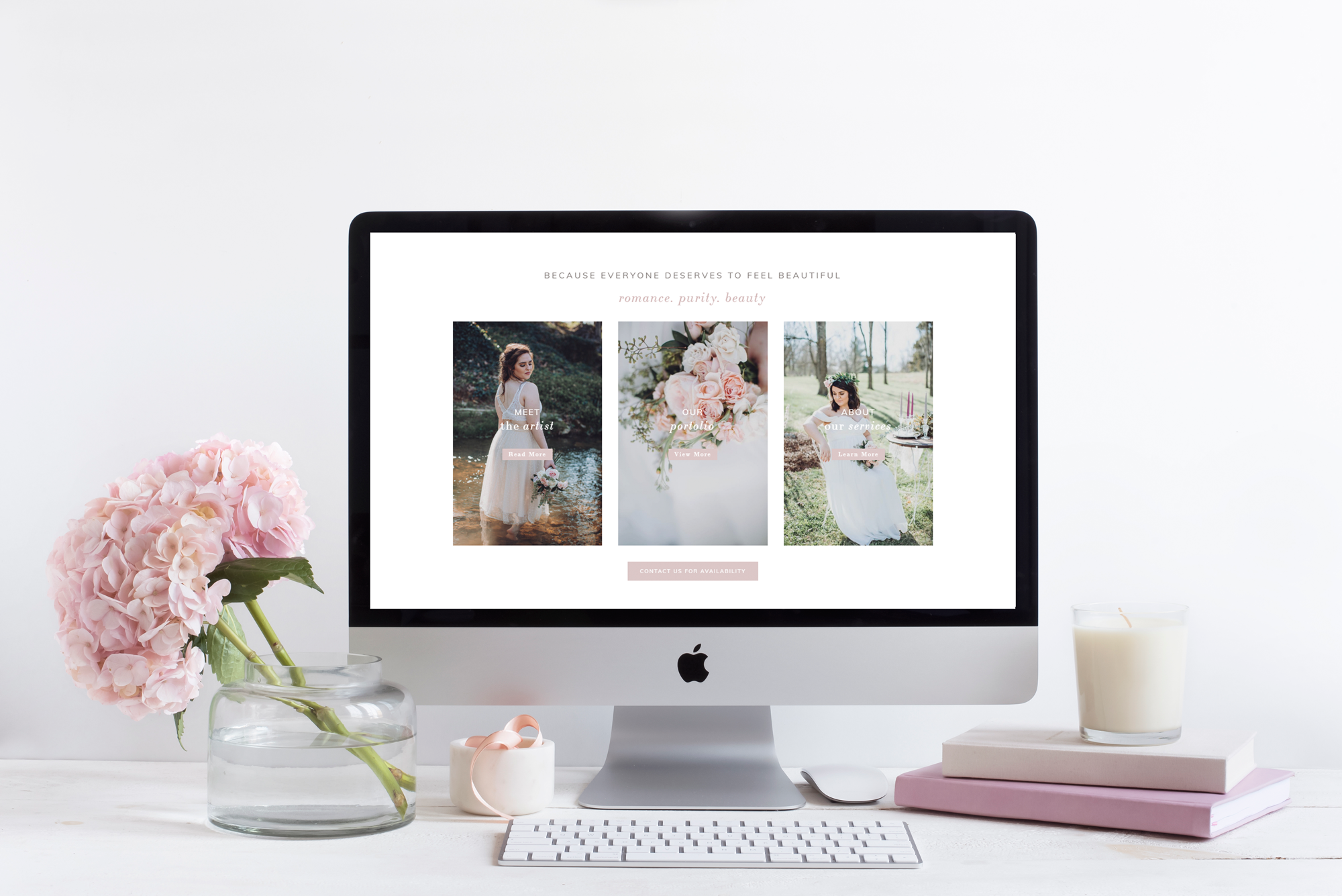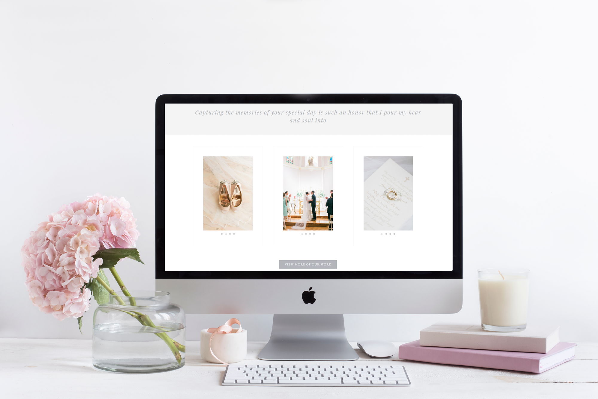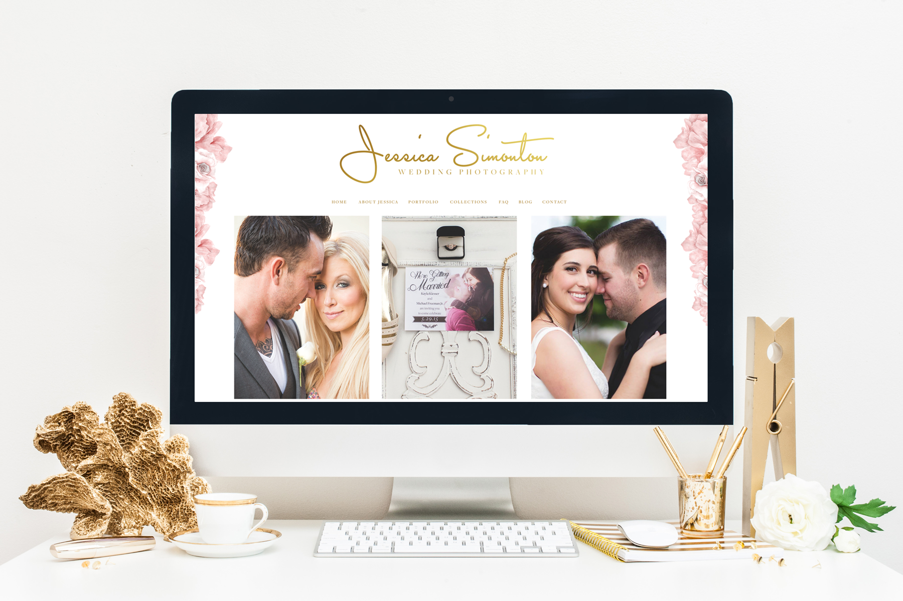 Feminine & Elegant Style: Wedding photographer Jessica Simonton wanted a brand that represented her higher end clients. We both collaborated on creating a custom background full of her favorite flowers but still kept it clean enough so that her work was the main focus.