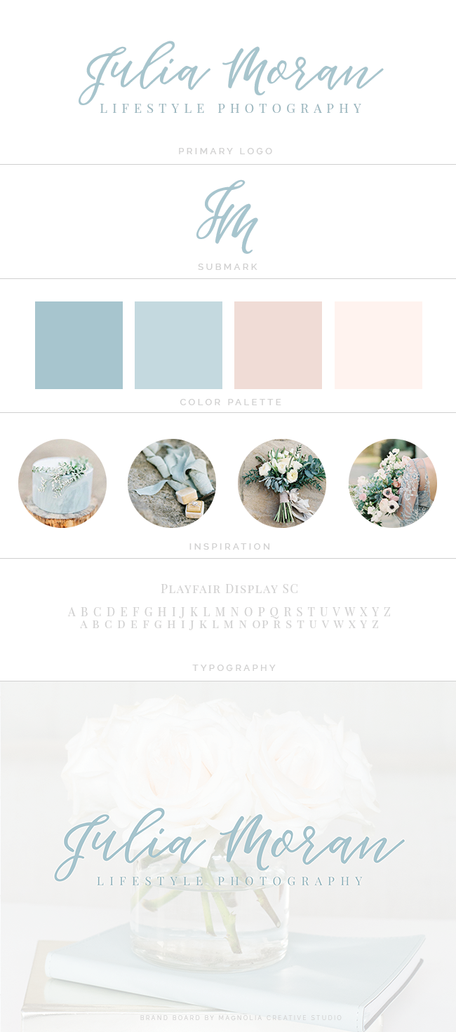 With this project we wanted to achieve a soft and feminine look for a lifestyle photographer. The calligraphy style typography and the dusty blue color that we picked, gives it a soft look that will speak to her target audience, which is young women.